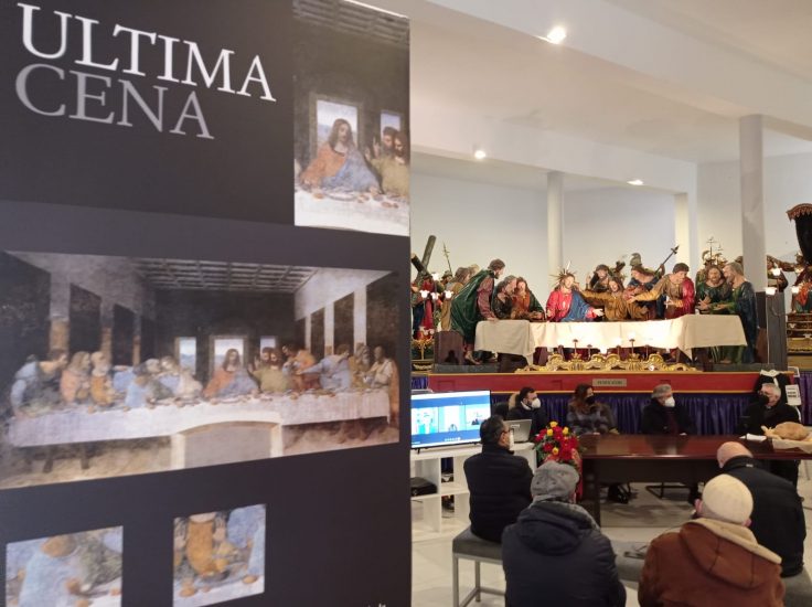 Dopo l’Expo di Milano del 2015, la vara “L’ultima cena”, la storica scultura in legno e cartapesta opera degli scultori napoletani Vincenzo e Francesco Biangardi, è pronta a partire alla volta di Roma: l’opera d’arte, tra le più note della Settimana Santa di Caltanissetta, dal 4 febbraio al 21 marzo sarà in esposizione al Molo E, area imbarchi internazionali (in corrispondenza dello spazio tra le uscite E13-E15 a sinistra ed E14-E16 a destra) dell’Aeroporto “Leonardo da Vinci” di Roma Fiumicino.