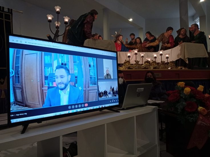 «L’arte ha ormai conquistato gli aeroporti: mostre, opere e esperienze d’arte sono presenti in molti aerostazioni in tutto il mondo. La cultura si trova sempre più a suo agio nella dimensione dinamica di uno scalo aeroportuale dove gente in movimento sfrutta le ore di attesa prima di imbarcarsi verso le loro destinazioni per approfondire la conoscenza di opere e territori fino a quel momento poco familiari – ha raccontato Giancarlo Cancelleri, Sottosegretario al Ministero delle Infrastrutture e della mobilità sostenibili collegato in videoconferenza-. Ecco che l’esposizione del gruppo sacro “L’ultima cena” dei maestri artigiani Biangardi, tra i pezzi da 90 della Settimana Santa di Caltanissetta, all’hub internazionale di Roma Fiumicino, è un’occasione molto importante per parlare al mondo in movimento di un evento religioso, culturale e popolare insieme e di una città che della propria storia e della propria identità è orgogliosa. Questo progetto vede anche la proficua collaborazione tra il Comune di Caltanissetta e alcune associazioni protagoniste della Settimana Santa, vedi l’Associazione dei panificatori, proprietari della storica Vara, e quella del Giovedì Santo che si occupa dei riti delle Vare. Ringrazio il Ministero delle Infrastrutture e della mobilità sostenibili per il patrocinio gratuito concesso al progetto e voglio ringraziare la società Aeroporti di Roma per aver concesso gli spazi del Molo E, nel settore delle partenze internazionali. Dal 4 febbraio al 21 marzo Caltanissetta “viaggerà” molto lontano».
