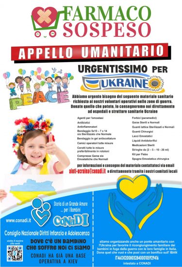 Federfarma Caltanissetta e Conadi Caltanissetta hanno attivato la campagna di raccolta “Un farmaco sospeso” per sostenere il popolo Ucraino che sta fuggendo dalla guerra.
