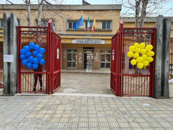 Questa mattina Caltanissetta si è svegliata sovrastata da una giornata grigia ma per due bambine Ucraine, sulle ringhiere del cancello della scuola Lombardo Radice, brillava il giallo del sole e l’azzurro del cielo.