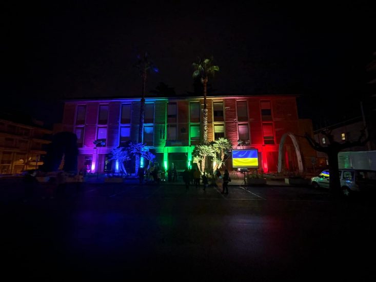 SAN CATALDO. I colori della pace con la bandiera dell’Ucraina hanno illuminato stasera il palazzo comunale di San Cataldo. Un gioco di luci suggestivo quanto significativo, quello che è stato possibile ammirare nel contesto di un palazzo comunale nel quale oggi pomeriggio s’è svolta una seduta del consiglio comunale dedicata alla delicata situazione dell’Ucraina all’indomani dell’invasione da parte della Russia.