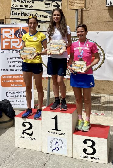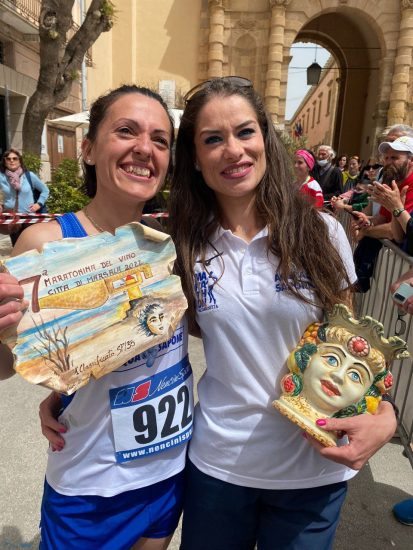 Prima gara in veste Marathon per Lina Capra, anche per lei giornata da non dimenticare. Lina, donna discreta dal cuore sportivo, inizia la sua esperienza podistica con lunghe passeggiate, ma la costanza e la determinazione riescono a spingerla oltre, passando alla corsa; anche lei seguita da Francesco Augello nelle varie fasi di preparazione, riesce a conquistare la seconda posizione nella sua categoria SF60, chiude in 02h05’44’’. Incredula, meravigliata e piena di gioia ritira il suo primo premio da runner, conquistato in una delle più belle gare della Sicilia.