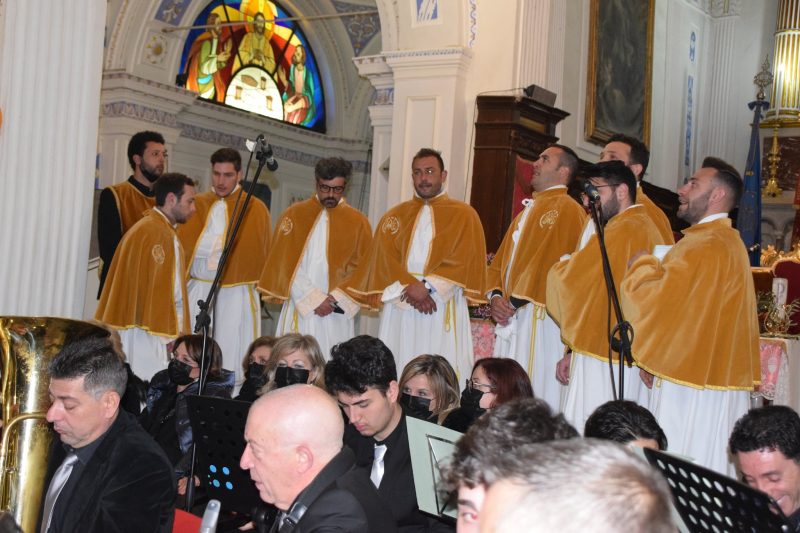 L’Ave Verum si è concluso con il brano “Ah sì, versate lagrime” con l’esecuzione del Coro, Filarmonica e gruppo lamentatori.