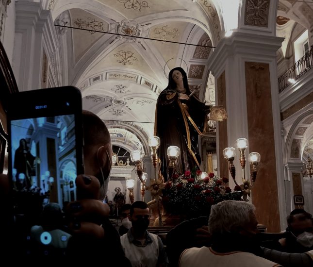 MUSSOMELI – Partecipate le Vie Crucis nelle locali parrocchie nel sesto ed ultimo Venerdi di Quaresima, a cui i vari gruppi di lamentatori non hanno fatto mai mancare la loro presenza con le loro “parti” del lamento. Riti della pietà popolare che ieri sera, alla Madrice, si sono conclusi, con la genuflessione e l’inchino al Crocifisso, la benedizione eucaristica e la piccola processione, all’interno della chiesa, fino a raggiungere l’altare della Cappella del Sacramento dove, nel tabernacolo, viene custodita l’Ostia consacrata; nella parrocchia di San Giovanni, invece, dove si venera l’Addolorata, al termine della Via Crucis, è seguita una breve processione col simulacro dell’Addolorata preceduta dai confrati e consorelle e dal parroco Francesco Miserendino che ha sorretto il Crocifisso. Partecipazioni sentite ed ordinate, accompagnate da canti e lamenti, propri della tradizione.
