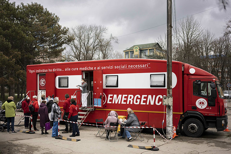 L’associazione umanitaria è presente in Moldavia, il Paese che si trova più vicino alla città ucraina di Odessa, con il Politruck, il piu’ grande tra gli ambulatori mobili, con un team composto da medico, infermiere, psicologo, mediatore culturale e logistico.