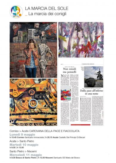 Per mantenere alta la tensione in direzione inversa alla guerra, gli organizzatori dell’iniziativa hanno deciso di camminare ogni mese da Comiso a Niscemi declinando, nello stesso mese, una nuova lingua parlata e scritta da artisti, poeti, scrittori, musicisti e intellettuali, nell’ambito di una assoluta e singolare declinazione della Pace come meditazioni, parole, azioni e fatti. Sempre ogni mese, subito dopo il pellegrinaggio, verrà associato “Un assolo per la Pace” di un’artistacon un’opera d’arte realizzata appositamente sul tema della pace esposta alla Galleria degli Archi di Comiso.