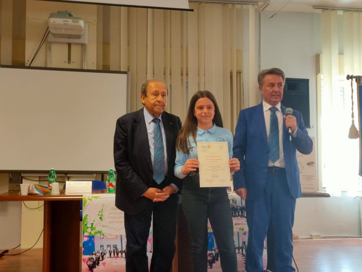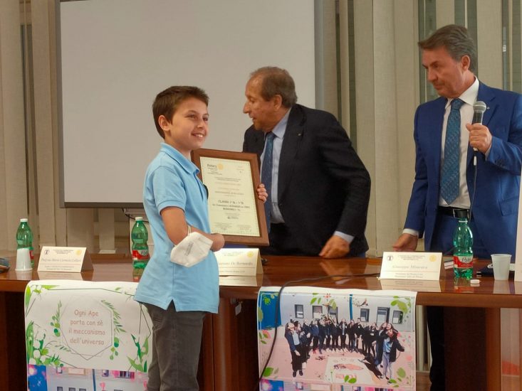 MUSSOMELI – Nei giorni scorsi, alla presenza delle più alte cariche del Rotary Club Distretto 2110 Sicilia e Malta, presso l’aula magna “Angelo Barba” dell’Istituto Comprensivo Statale “Leonardo da Vinci di Mussomeli, si è tenuta la cerimonia di premiazione del Concorso “S.O.S” API, che ha visto classificati al primo posto, a livello provinciale, gli alunni delle classi I A e I B di Scuola secondaria di I grado dell’Istituto, i quali hanno ottenuto l’Encomio d’onore con distinzione di platino.