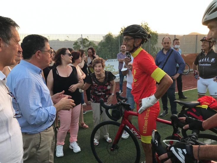 La bellissima iniziativa nasce in occasione del 25esimo anniversario della morte del padre di Rino, Alfonso Virciglio, sindaco del paese dal 1972 al 1997 e al quale è dedicato lo Stadio comunale di Campofranco che proprio in questa occasione ha costituito il traguardo del loro viaggio.