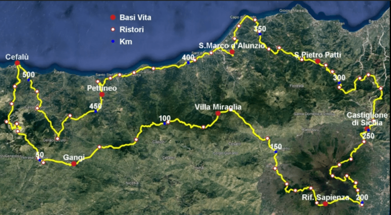 Il percorso, il più lungo di questo tipo in Italia e fra i più lunghi d’Europa e del mondo, si snoda attraverso 4 parchi regionali, con partenza e arrivo nella città normanna di Cefalù, patrimonio dell’UNESCO, attraversando il territorio di 50 diversi comuni fra cui 8 fra i borghi più belli d’Italia e correndo lungo una parte del Sentiero Italia.