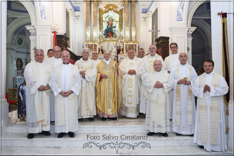 MUSSOMELI – In una cornice delle grandi occasioni, le campane della Chiesa Madre di Mussomeli, il 31 agosto 2022, hanno suonato a distesa per accogliere Padre Achille Lomanto, nella doppia veste, di Arciprete di Mussomeli e di Vicario foraneo. Uno stuolo di presbiteri, diaconi, religiosi, e religiose, con il vescovo mons. Mario Russotto celebrante, il vicario Generale don Onofrio Castelli, presenti evidentemente i due arcipreti, l’uscente ed il subentrante, rispettivamente, Padre Pietro Genco e Padre Achille Lomanto, ha fatto l’ingresso nella chiesa Madre di Mussomeli, preceduto dalle realtà ecclesiali annesse alla parrocchia con i propri labari – Congregazione di San Pasquale, Congregazione di San Giuseppe e l’arciconfraternita del SS. Sacramento alla Madrice di Mussomeli. Presente il sindaco Giuseppe Catania, il Presidente del Consiglio Gianluca Nigrelli ed il consigliere comunale Yosella Schifano. Una cerimonia animata col canto della corale parrocchiale. L’omelia del Vescovo, il ringraziamento del nuovo Arciprete, il dono della casula della comunità parrocchiale presentato dall’arciprete uscente ha sancito, fra gioia ed emozione, l’insediamento di Padre Achille Lomanto nella chiesa Madre di Mussomeli che, nella continuità, adesso volta pagina.