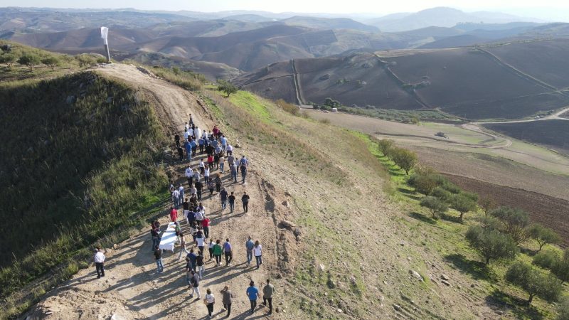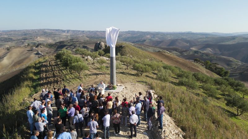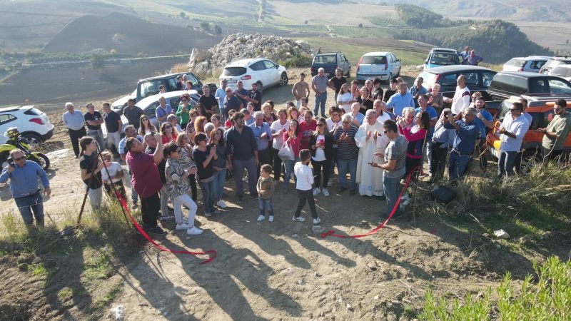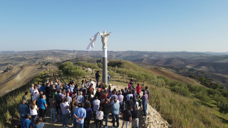 MUSSOMELI – Volere è potere! Sembrava irrealizzabile e, invece, da una persistente idea, nata da Pino Aina e Mario Palmeri, il loro sogno vissuto interiormente, è diventato realtà, condiviso e con l’apporto concreto di alcuni agricoltori di contrada Sampria: un vasto lembo di terra, su cui insiste anche il tratto viario Mussomeli-Caltanissetta. Esattamente dallo scorso 23 ottobre, in alto sulla collina domina la statua accogliente del Cristo Redentore. E’ stato scelto ed utilizzato come materiale la polvere di marmo del peso complessivo di 400 kg circa, con altezza di 1,80 metri. L’opera è stata accuratamente collocata su una stele dell’altezza di quattro metri dal piano campagna. opportunamente e diligentemente approntata sul fondo di cui sono proprietari i signori Lo Bue Salvatore e Giovanni che hanno dato volentieri la loro disponibilità alla realizzazione dell’iniziativa. Un lodevole gesto quello sei signori Lo Bue assai apprezzato ricevendo il pubblico ringraziamento da parte dei promotori dell’iniziativa. Ed è stato proprio il gruppo di agricoltori di Sampria che, contraddistinti dal forte spirito di fede e unione, hanno dedicato tempo e passione nella sua realizzazione. Il Cristo, come già è stato detto, è posizionato su un suggestivo promontorio di c.da Sampria, territorio di Mussomeli e sembra abbracciare le numerose Aziende Agricole che sorgono ai piedi del monte; e non solo, ma anche i tanti utenti della strada, assai trafficata, che collega i paesi del circondario. Da evidenziare che le famiglie che hanno contribuito in prima persona nella realizzazione sono le famiglie Palmeri, Mingoia, Aina, Sola e Ricotta. Alla esecuzione dell’opera, nelle varie fasi del lavoro, con maestria, impegno ed entusiasmo si sono fatti avanti i signori Mingoia Fabio, Morreale Michele, La Piana Salvatore, Lanzalaco Calogero e Alfonso Cipolla. ed un ringraziamento particolare è andato alla ditta Salvo di Montedoro per avere messo a disposizione la gru. L’ Inaugurazione avvenuta domenica scorsa 23 ottobre 2022, con la benedizione impartita dal parroco di Cristo Re don Liborio Franzù, presente l’assessore comunale al Territorio Michele Spoto. Un centinaio di persone hanno partecipato all’evento. Da sottolineare che nelle intenzioni dei promotori dell’iniziativa, assai religiosi, c’è stato il forte desiderio di porre l’immagine del Cristo Redentore a protezione degli agricoltori, degli allevamenti e dei campi della zona che, purtroppo, presenta particolari problematiche sia per la posizione geografica e climatica sia per la distanza dai centri abitati, come se fosse un luogo sperduto e spopolato. “Il Cristo Redentore sarà il nostro “compagno di lavoro” – hanno detto gli agricoltori dopo la cerimonia dell’inaugurazione; ci darà compagnia e protezione nei momenti di lavoro molto spesso svolti in solitudine”. Il sito è rintracciabile su google Maps cercando “Cristo Redentore della Sampria”, e alla omonima pagina Facebook (VIDEO IN ELABORAZIONE)