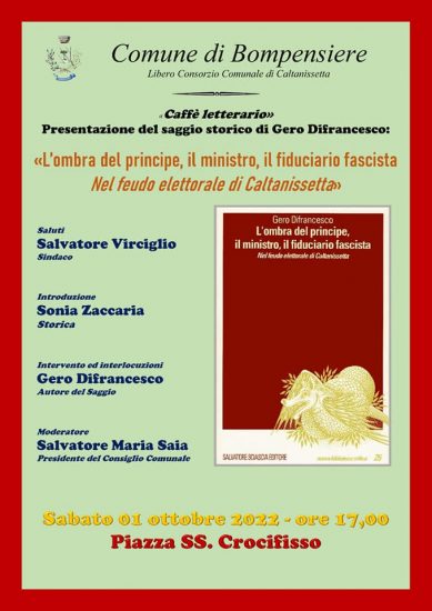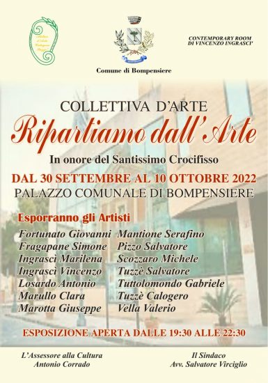 BOMPENSIERE – Bompensiere, un centro con poco meno di 500 abitanti, sta vivendo una nuova stagione che sembrerebbe rispondere con una voglia di vivere che parte da attività ludiche organizzate e sollecitate dall’amministrazione comunale di Bompensiere, per rimbalzare anche su episodi di anniversari privati che hanno coinvolti la cittadinanza anche attraverso l’operatività di comunità della Parrocchia. Un mese di settembre proficuo in continuità dell’agosto bompensierino con il culmine della festa del Santo Patrono il SS. Crocifisso che si è celebrata il 2 ottobre 2022 con la consueta partecipazione della Banda Musicale “G. Verdi” di Caltanissetta, le «prumisioni» dei devoti, serata finale con lo spettacolo di Ivano che ha imitato magistralmente Vasco Rossi e fuochi d’artificio in finale. Attività ludiche che hanno coinvolto la partecipazione diretta degli abitanti in un coinvolgimento gioioso di compartecipazione nelle attività tese anche a promozionare prodotti locali ormai rientrati nella tradizione («pani cunsatu» e «pizzettu nadurisi»). Non sono mancate attività culturali che vanno dalla presentazione del poderoso volume sulla storia di Bompensiere di Carlo Diliberto («La baronia di Bompensiere»), la conferenza nella Chiesa Madre del Museo Diocesano di Caltanissetta nell’ambito del «Percorso dei Principi» sul tema «Bompensiere, tra principi e baroni, la lunga storia di una modesta comunità» e la presentazione del saggio storico di Gero Difrancesco («L’ombra del principe, il ministro, il fiduciario fascista nel feudo elettorale di Caltanissetta»). Notevole anche la mostra «ripartiamo dall’arte» coordinata dall’artista Calogero Tuzzè aperta nel Municipio dal 30 settembre al 10 ottobre 2022. Notevole, poi, la realizzazione del murales dal titolo «accussì eramu e accussì ristammu», realizzato da Giuseppe Marotta, giovane proiettato in un augurale futuro artistico di rilievo. Prima realizzazione di una serie di iniziative similari dell’Amministrazione comunale nell’ambito di applicazione delle somme accantonate per la «democrazia partecipata». Inaugurato dal Sindaco Salvatore Virciglio, con benedizione del Parroco Padre Pignatone, il 30 settembre. In tutto questo si inseriscono anche due anniversari di matrimonio che hanno coinvolto non solo la comunità parrocchiale.