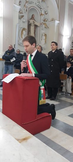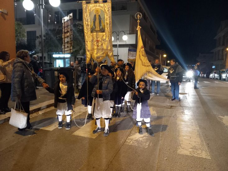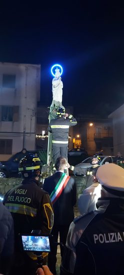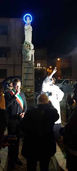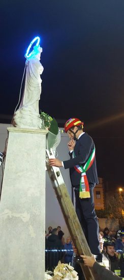 MUSSOMELI – Ha presieduto i Vespri solenni dell’Immacolata l’arciprete Padre Achille Lomanto, presenti il clero di Mussomeli con i parroci Padre Francesco Mancuso, Padre Vincenzo Giovino e i sacerdoti Padre Salvatore Tuzzeo e Padre Pietro Genco. Hanno fatto gli onori di casa Padre Maurizio, il fraticello della Copiosa Redenzione assieme ai giovani novizi. Ad animare la cerimonia ha provveduto il coro della comunità francescana. Le autorità, rappresentate dal Vice sindaco Toti Nigrelli e dall’intera giunta, dal presidente del Consiglio Gianluca Nigrelli, dal capitano Giuseppe Tomaselli, dal comandante della finanza Salvo Imbesi, dal comandante dei Vigili Urbani Attilio Frangiamore, dal governatore della Misericordia Vittorio Catania, dai volontari del Cisom, sono state accolte all’ingresso della chiesa dal celebrante Padre Achille e dal Fraticello Padre Fabrizio, dirigendosi verso l’abside. Ben visibili gli otto piccoli cavalieri dell’Immacolata con il loro labaro e a seguire l’Associazione degli Amici di San Francesco che curano l’organizzazione della festa. Nel corso della cerimonia il vice Sindaco Toti Nigrelli, con la fascia tricolore, ha pregato in ginocchio per impetrare la benevola intercessione dell’Immacolata per la comunità mussomelese. Al termine, è snodato il corteo processionale, lungo la via Palermo, in direzione del monumentino della Madonnina delle Case Popolari, dove, fra gli applausi generali e fra il suono delle sirene dei vigili del fuoco, è stato sistemato l’omaggio florale, mentre nell’aria riecheggiava il suono della ninareddra del Corpo bandistico del maestro Giuseppe Noto. Intanto, oggi giornata liturgica dell’Immacolata con messe e tradizionale processione