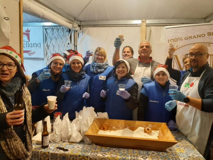 MUSSOMELI – Assai soddisfatti tutti i componenti della Proloco per l’ottima riuscita della 6^ edizione della SAGRA DELLA GUASTEDDRA CON MERCATINI DI NATAL, che ha registrato la partecipazione di diversi espositori e l’afflusso di numerosi visitatori. Organizzazzione perfetta ed ormai consolidata sotto la guida operativa dell’instancabile assessore Seby Lo Conte.”Siamo riusciti, finalmente, in sinergia con l’amministrazione comunale di Mussomeli, scrivono i soci della Pro Loco in un loro comunicato, a riprendere la sagra della guasteddra.Nata nel 2015 è stata fortemente voluta per dare a Mussomeli una sagra inerente un prodotto tipico locale, un dolce povero, dagli ingredienti semplici e che le nostre mamme, le nostre nonne, le nostre bisnonne (e potremmo ancora continuare indietro nel tempo), preparavano ogni anno in occasione della Festa dell’Immacolata Concezione.Siamo più che soddisfatti per lo svolgimento della sagra che, seppur in una piazza diversa da quella in cui solitamente si svolge, è riuscita a conciliare tradizione popolare con convivialità e socialità.Il 7 dicembre la serata è stata animata dai bravissimi ragazzi della New street band che, con i loro strumenti, hanno contribuito maggiormente a far sentire il calore e la magia del Natale. Giorno 8, invece, il compito di creare atmosfera natalizia e stato affidato ai bravissimi ragazzi del Quartetto Folk.La Sagra nasce da sinergie, collaborazioni e disponibilità, ed è per questo motivo che riteniamo doveroso fare gli opportuni ringraziamenti:- Al mulino Madonna dell aiuto di Mussomeli che sin dalla prima edizione ha fornito la farina necessaria;- Alla Castellana che ha preparato l’ impasto delle guasteddre;- Agli operai del comune di Mussomeli per il loro prezioso ed infaticabile lavoro;- Al Comandante dei Vigili Urbani di Mussomeli Attilio Frangiamore e a tutto il corpo dei vigili urbani per il prezioso servizio svolto;- Alla Croce Rossa di Mussomeli, nella persona del Dott. Assessore Daniele Frangiamore, per aver garantito il presidio medico durante tutta la durata della sagra;- A Salvatore Messina per aver messo a disposizione gli animali per l’arricchimento del presepe annesso alla sagra;- Le scuole di Mussomeli: IISS Virgilio (agrario e alberghiero) e l’ Istituto Leonardo da Vinci di Mussomeli;- Al presidente dell’ ARS On. Dott. Gaetano Galvagno;- A Sig. Salvuccio La Monaca e al Sig. Carmelo Barba per le loro straordinarie riprese ;- Al nostro infaticabile e sempre energico Assessore Seby Lo Conte, che con la sua voglia di fare, mettendo anima e corpo, riesce sempre a garantire la bellezza degli eventi;- Al nostro socio Pino Ricotta per l’impegno ed il lavoro svolto durante tutte le fasi di preparazione della sagra; – Al nostro Sindaco Onorevole Giuseppe Catania, per il supporto e la collaborazione per le iniziative intraprese;- A tutti gli espositori, locali e non, che hanno voluto partecipare alla nostra sagra , proponendo una ampia scelta di prodotti artigianali e di eccellente qualità;- A tutti i visitatori della sagra, locali e non, per averci onorato apprezzando così il nostro operato;- A tutti i soci proloco, Senior e Junior e ai ragazzi di APS STRAUSS , che hanno collaborato al coordinamento e allo svolgimento della sagra;- Ai soci Junior che hanno gestito la pesca solidale e la libreria solidale;- Al nostro servizio civile, operoso e disponibile. Dunque, una gran bella festa che per due giorni ha fatto vivere Mussomeli un po di più. Alla prossima. La vostra Pro loco”. Da sottolineare che è stato allestito l’Albero di Natale e sistemata la casa di Babbo Natale con le relative luminarie per la gioiua grandi e piccini. (VIDEO)