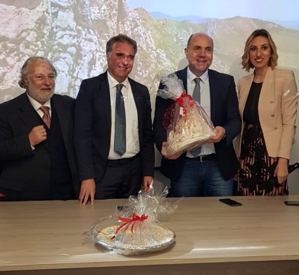 MUSSOMELI – 23 dicembre 2022, antivigilia di Natale e i locali messi a disposizione dal Comune di Mussomeli come nuova sede della Proloco, opportunamente ristrutturata a seguito di un antico progetto, pensato, studiato ed elaborato e finalizzato alla realizzazione di un Centro Culturale, ricreativo, di servizi turistici e promozione di prodotti locali, è stata benedetta dal parroco don Vincenzo Giovino e inaugurata dal presidente Nazionale Antonino La Spina, il presidente provinciale Loreto Ognibene e il locale presidente Zina Falzone, alla presenza del sindaco on. Giuseppe Catania, e dei responsabili di alcune Proloco della provincia; ma ancor prima c’è stato lo scoprimento della Targa indicativa, appunto della sede. Presenti le forze dell’ordine, il presidente ed il vice presidente del Consiglio comunale, rispettivamente Gianluca Nigrelli e Pasquale Mistretta, ed ancora diversi soci ed estimatori della Pro Loco. L’iniziale saluto di benvenuto è stato dato dalla presidentessa Zina Falzone che ha avviato l’incontro. Immediatamente dopo ha preso la parola il presidente provinciale Loreto Ognibene che ha fatto un esaustivo excursus del sodalizio di Mussomeli per la sua lunga presenza nella Terra di Manfredi. E’ intervenuto successivamente l’attore mussomelese e rappresentante dell associazione ARNIA Giuseppe Navarra che nel suo linguaggio di artista ha parlato di Proloco, volontariato, terra di Sicilia e la sua bellezza, magistralmente accompagnato dalle note del maestro Giuseppe Noto, riscuotendo l’applauso dei presenti. I successivi interventi sono stati quelli del sindaco Catania, del Presidente Nazionale dell’UNPLI Antonino La Spina e dell’assessore Seby Lo Conte, espressamente invitato a parlare dal Presidente Provinciale UNPLI Loreto Ognibene. L’assaggio della torta finale ha concluso la cerimonia dell’inaugurazione della nuova sede della locale Pro Loco, con la soddisfazione dei presenti.