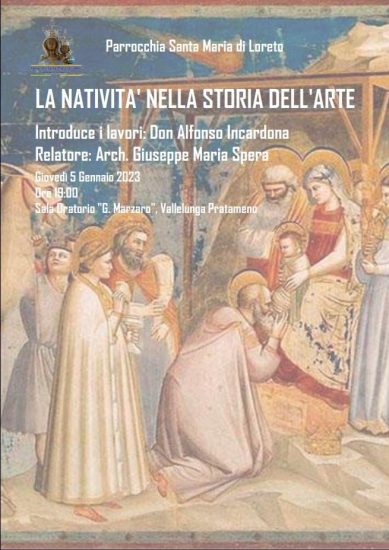 VALLELUNGA – Appuntamento culturale, domani pomeriggio, alle ore 18, presso la sala Oratorio “G. Marzaro”, organizzato dalla Parrocchia Santa Maria di Loreto. Introdurrà i lavori il parroco don Alfonso Incardona, mentre il relatore arch. Giuseppe Maria Spera intratterrà gli intervenuti su “La Natività nella storia dell’arte”.