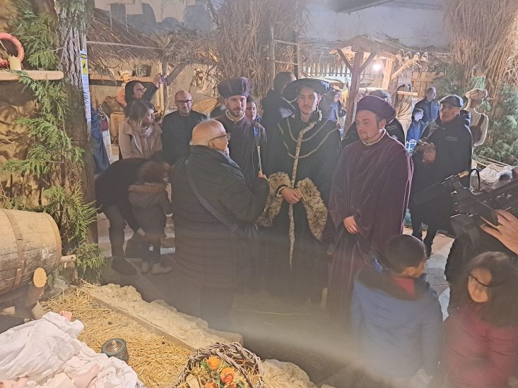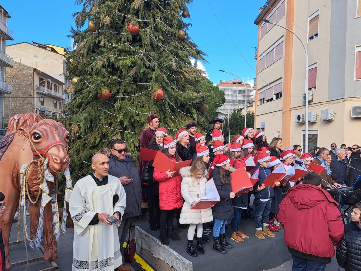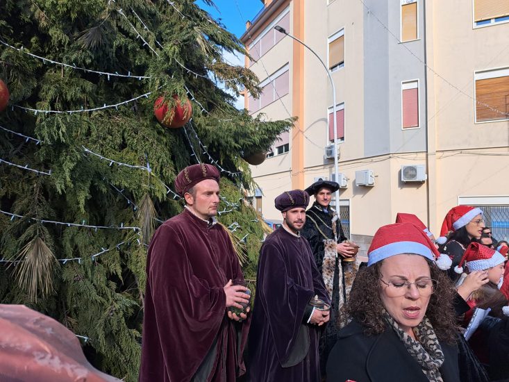 MUSSOMELI – i Re Magi “Gaspare, Baldassare e Melchiorre”, sono arrivati anche a Mussomeli. E così dopo la messa delle 10,30 del parroco del Carmelo don Salvatore Falzone si sono messi in viaggio, con un corteo processionale dei parrocchiani verso la capanna allestita in Piazza Caltanissetta. Un corteo semplice, preceduto dai novenari con i loro canti locali tradizionali e da un gruppo di ottoni guidati dal maestro Peppe Noto, creando un’atmosfera davvero magica. Al seguito, bambini, parrocchiani e don Falzone che ha portato il Bambinello da deporre nella capanna ela successiva visita dei Magi alla Capanna per offrire i loro doni oro, incenso e mirra. Intanto nella Piazza Caltanissetta hanno trovato posto, sotto l’albero di Natale il coro dei bambini dell’Associazione Don Diego Di Vincenzo con alcuni genitori che hanno cantato brani natalizi. E’ seguita la benedizione finale del parroco don Salvatore Falzone con l’augurio di trovarsi tutti uniti nella concordia, concludendo l’evento della mattinata. Presenti il sindaco Catania e l’assessore Lo Conte che ha egregiamente coordinato il tutto, collaborato dalla Pro Loco. Presente anche il gruppo speciale della Croce Rossa Italiana di Caltanissetta e Mussomeli. (IL VIDEO)