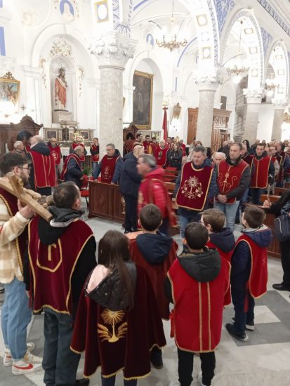 MUSSOMELI – E’ iniziato il periodo quaresimale e le parrocchie e confraternite in stretta collaborazione sono impegnate nelle varie celebrazioni, appunto, del tempo quaresimale. Da ricordare che a Mussomeli sono presenti 6 parrocchie, 5 confraternite, annesse alle rispettive parrocchie col proprio assistente ecclesiastico. In due parrocchie non sono aggregate realtà confraternali: nella Parrocchia “Cristo Re” e “Trasfigurazione in Santa Teresa al Castello”. Col mercoledì delle Ceneri è iniziato questo cammino e Venerdì Sera, nelle parrocchie, si sono svolti i riti della Via Crucis.. Nella parrocchia Madrice era presente il coeso gruppo dei lamentatori che, fra squilli di tromba e tamburo, hanno animato, la Via Crucis presieduta dall’Arciprete Padre Achille Lomanto. Anche il coro parrocchiale e le catechiste hanno fatto la loro parte nelle meditazioni in ciascuna stazione della Via Crucis. L’immagine del Crocifisso, poi, è rimasto visibile davanti all’altare, attorniato dai ragazzi del catechismo della Madrice. Ma niente bacio del Crocifisso, semplicemente la devota genuflessione davanti alla sua immagine da parte dei tanti presenti che, fra canti quaresimali, si sono avvicinati proprio davanti l’altare. La benedizione eucaristica e la finale processione all’interno della chiesa fino a raggiungere la cappella del SS.Sacramento, è stata accompagnata dal popolare canto corale della “Preghiera fervida” e del “Mater dolorosa”. Anche nella Parrocchia della “Trasfigurazione in Santa Teresa al Castello” col parroco Padre V incenzo Giovino, c’è stato l’analogo rito della Via Crucis animato con canti quaresimali eseguiti dal coro parrocchiale. Durante il rito, ad ogni stazione della Via Crucis era presente un bambino con un lumino acceso, mentre una grande croce, con sosta in ogni stazione, è stata portata a mano dai ragazzi del catechismo con la benedizione finale del parroco Padre Giovino.