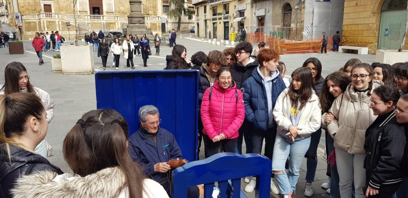 La visita guidata ha particolarmente interessato e stimolato gli studenti delle classi terze del Luigi Russo, Indirizzo Tecnologico (corsi A,B,C), accompagnati dalle professoresse Paola Garito, Valentina Pistis, Giuseppina Stincone e Mariapia Burò, e dal prof. Giuseppe Messina. Nel corso della visita guidata gli studenti hanno incontrato e dialogato con il sindaco della città, Roberto Gambino, e con il mitico, inossidabile lustrascarpe, sig. Giuseppe Romano.