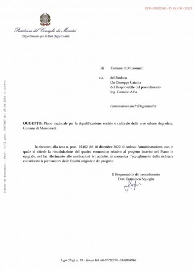 MUSSOMELI – E’ arrivata positiva la risposta romana alla lettera dello scorso dicembre inviato dal Comune di Mussomeli, relativa alla rimodulazione del quadro economico per la riqualificazione dei campetti di tennis e padel nella zona Madonna delle Vanelle. Ne ha dato notizia il sindaco on. Catania, precisando che a breve è prevista la gara per l’affidamento di tali lavori.