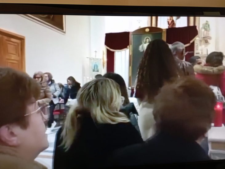 MUSSOMELI – Ieri pomeriggio, la messa liturgica della Divina Misericordia, istituita nel 2000, è stata celebrata nella chiesa di San Francesco dal fraticello della Copiosa Redenzione Padre Valdecir e concelebrata dal frate Conventuale Padre Luigi Sapia. Al centro dell’abside è stata sistemata, bene visibile, una grande immagine di Gesù Misericordioso. Presenti alla liturgia anche i novizi della Copiosa Redenzione, nel loro anno di formazione a Mussomeli. Una solenne liturgia, animata dal coro francescano, e che ha registrato anche, a fine messa, il passaggio del SS. Sacramento all’interno della chiesa, sorretto dal celebrante Padre Valdecir, mostrandolo ed accolto, con devozione e con la preghiera, dai presenti. Al termine, il saluto finale a Gesù Misericordioso ed il ritiro personale dei biglietti con il messaggio di Santa Faustina.