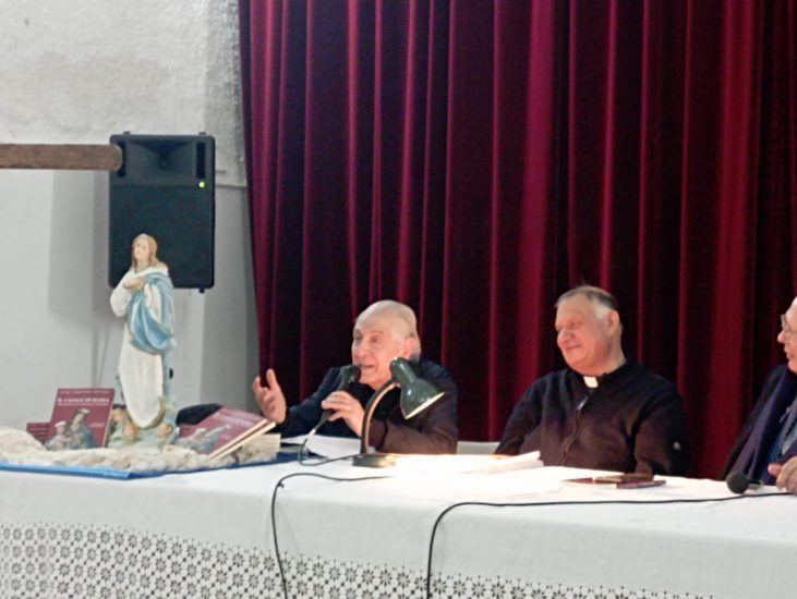 MUSSOMELI – Un fine settimana all’insegna della cultura. L’incontro culturale di fine settimana, nel salone dell’ex convento San Francesco, moderato dallo scrittore giornalista Roberto Mistretta, ha riunito appassionati e cultori di storia locale per la presentazione del libro “IL CASALE DI MARIA”, scritto a tre mani: P. Luigi Sapia, francescano conventuale, Giuseppe Canalella e Michele Ognibene. Hanno relazionato l’arciprete Padre Achille Lomanto e l’archeologo dott. Gianluca Calà. Ci sono stati i saluti iniziali di Maria Nucera ed Emilia Di Piazza, rispettivamente in rappresentanza delle Associazioni BCSicilia e Fidapa – sezioni di Mussomeli, come anche quelli del Presidente del Consiglio Comunale Gianluca Nigrelli e, nel corso dell’incontro, quelli del sindaco on.Giuseppe Catania. (IL VIDEO)