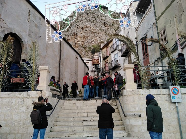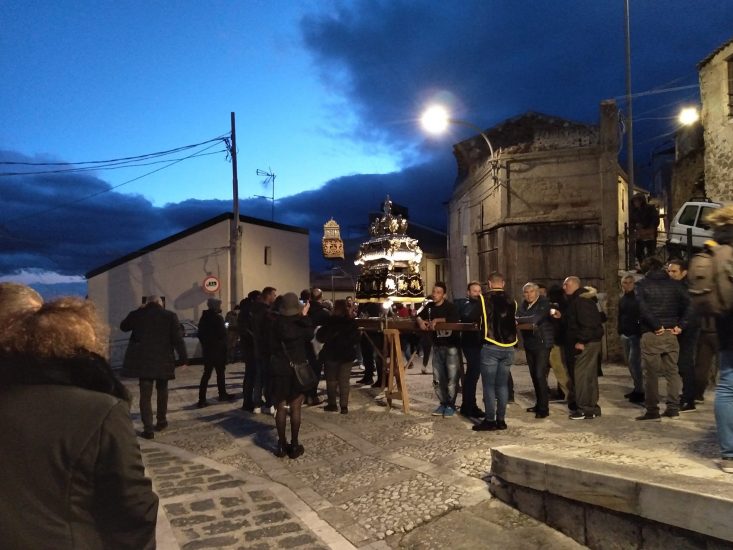 SUTERA – Sei giorni di sosta, nella chiesa Sant’Agata, di “li Santi Casci” di Sant’Onofrio e San Paolino come anche del simulacro di San Paolino , portati processionalmente e rigorosamente a spalle dalla vetta del Paese, dove si trova il Santuario, appunto per pregare e venerare gli anzidetti Santi. Questa tradizionale festa è in onore di San Paolino, Compatrono del paese che ricade, appunto, il martedì che segue la Pasqua. La festa di Sant’Onofrio, invece, ricade tradizionalmente la prima domenica di Agosto. E così, l’altra sera, esattamente domenica scorsa, dopo la celebrazione della messa in onore del Santo Compatrono San Paolino, intorno alle ore 19:30 le reliquie di San Paolino e Sant’Onofrio, accompagnati dalla banda musicale, dall’amministrazione e dai cittadini, hanno fatto ritorno al santuario sul omonimo Monte. A seguire in conclusione della serata si sono svolti i fuochi d’artificio. Da dire anche che, contemporaneamente alla festa, in piazza Sant’Agata, si è tenuta la manifestazione di “Sutera: Profumi e Sapori del Borgo Accogliente 2023”. Il Comune di Sutera ha proposto di suscitare percorsi emozionali e cognitivi al consumatore moderno, attraverso la valorizzazione e promozione dei prodotti agro-alimentari siciliani, con particolare riferimento a quelli legati alla tradizione suterese. L’itinerario gastronomico Lu Maccu, (crema realizzata con fave e verdure servita solo con olio extravergine d’oliva) Li Ciciri (zuppa di ceci) Lu Pitirri (minestra povera, una sorta di polenta preparata con farina di semola di grano duro, la quale viene lavorata e trasformata in granelli, per poi essere cotta con le varie verdure e ortaggi) ‘a m’briulata (impasto simile al pane, che viene “imbrigliata” ovvero arrotolata in modo da formare una girandola a spirale, farcita con olive, patate, pecorino e tritato di maiale. Virciddratu (buccellato, dolce di pasta frolla a forma di ciambella, farcito con “lu nucatu”, mandorle tostate e macinate, miele, piante selvatiche locali, aromatizzate con un pizzico di cannella. Queste pietanze tipiche della tradizione suterese sono state preparate e realizzate dallo Chef Andreea Andrei, Ristorante Pizzeria la Pineta. E dai vari forni e rosticcerie Briciole di Tradizione, I Sapori della Piazzetta e dal Panificio Malta.