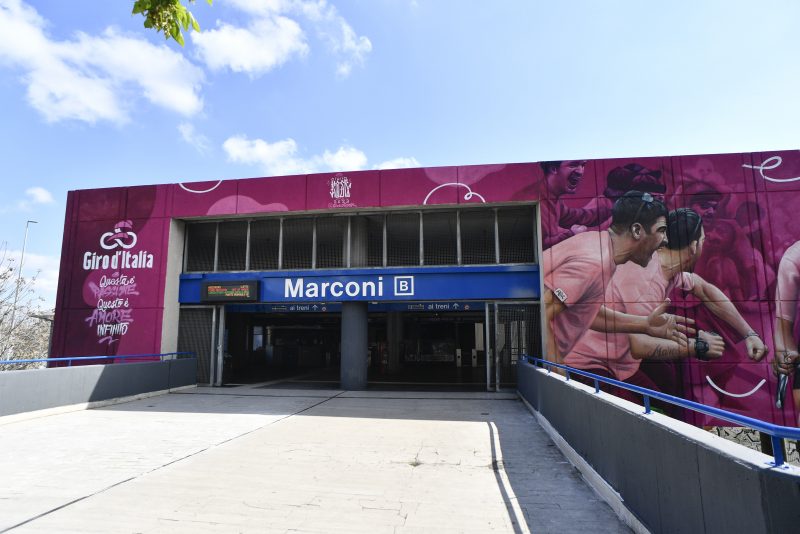 E’ stata inaugurata giovedì 20 aprile presso la stazione della metropolitana Marconi l’opera che Roma Capitale ha dedicato alla Corsa Rosa, un murales la cui realizzazione è stata affidata a Giulio Gebbia, in arte Rosk.