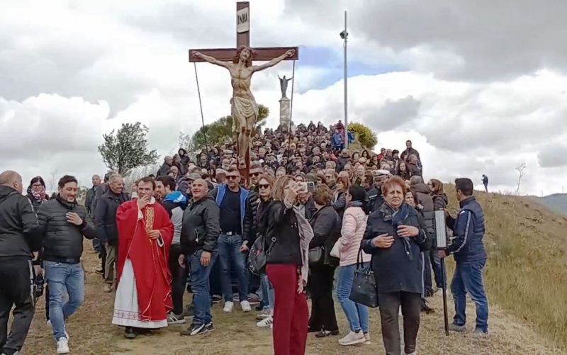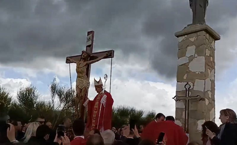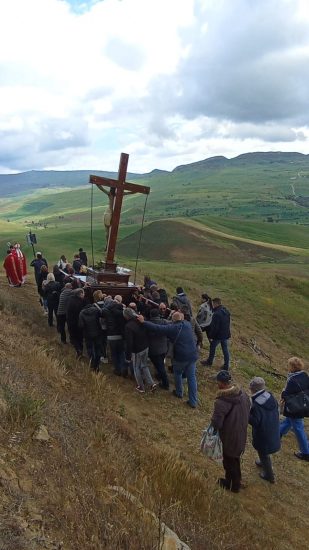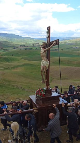 MARIANOPOLI (Castel Bilici) – Già di buon mattino diversi pellegrini si sono messi in movimento per il viaggio a lu Crucifiussu di Bilici che si venera nell’omonimo Santuario in cima alla collinetta. Un appuntamento, quello del 3 maggio, calendarizzato dalla tradizione che vede l’afflusso dei paesi vicini ed anche lontani. Una giornata nuvolosa, che, comunque, non ha scoraggiato affatto i pellegrini arrivati per la partecipazione alle celebrazioni della mattinata, come anche quelle pomeridiane con l’Esposizione Eucaristica e la Coroncina della Divina Misericordia previste nel programma. Intanto nella mattinata sono state celebrate messe e quella solenne delle 11,30, nell’ampio cortile, presieduta dal Vescovo di Ragusa, il resuttanese mons. GiuseppeVescovo La Placa. A seguire, accompagnata dalla banda musicale, fra canti e preghiere, il vescovo celebranteed i sacerdoti hanno partecipato alla processione del SS. Crocifisso, attorno al Santuario, fino a raggiungere il luogo dove è presente la stele su cui è sistemata la statua del Cristo Redentore che domina l’intera vallata. C’è stato il rito delle “Rogazioni” e la benedizione del Campi. Presenti anche I rappresentanti delle amministrazioni locali di Marianopoli , Vallelunga, Villalba, Resuttano, San Cataldo e Petralia Sottana con i sindaci Pietro Polito, Salvatore Noto, Gioacchino Comparato, Rosario Carapezza, Maria Paola Immordino e Giuseppe Ippolito. Un festa campestre, dunque, sentita e partecipata, quella del SS. Crocifisso di Bilici che continuerà ad accogliere in questo piccolo santuario, nel restante periodo primaverile ed estivo, i pellegrini provenienti da ogni parte di Sicilia.