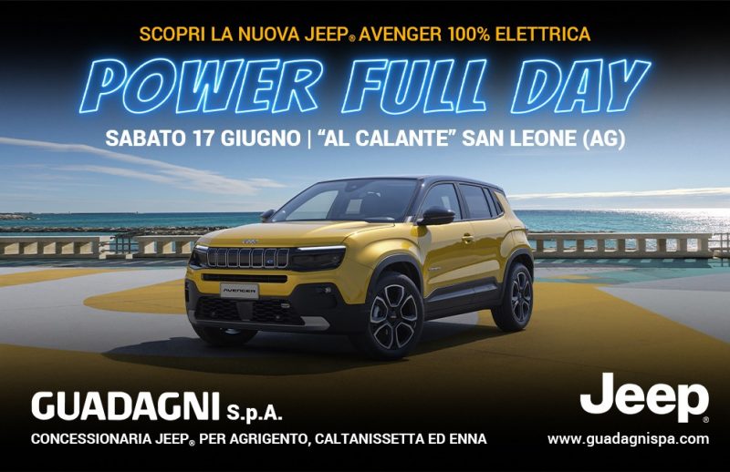 Durante il “Power Full Day” sarà possibile prenotare un test drive per provare la Nuova Jeep® Avenger, l’auto più rivoluzionaria dell’anno presso le sedi Guadagni Spa di Agrigento, Caltanissetta e Sciacca.