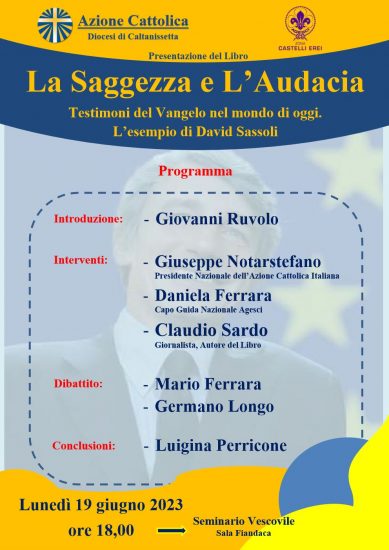 La saggezza e l’audacia sono i tratti che David Sassoli ha impresso alla sua azione politica per costruire un progetto europeo di pace, democrazia, diritti e uguaglianza. La persona oltre il profitto, la lotta contro la povertà, il ruolo dell’Europa nel contrastare il cambiamento climatico sono concetti idealmente espressi e pragmaticamente declinati nel suo ruolo di presidente del Parlamento europeo, compendiati nel libro “La saggezza e l’audacia. Discorsi per l’Italia e per l’Europa” che sarà presentato lunedì 19 giugno alle 18 al Seminario vescovile di Caltanissetta.