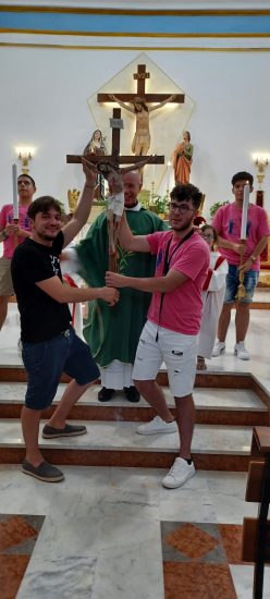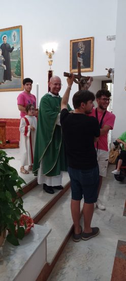Mattinata di attività parrocchiale intensa a Bompensiere. Durante la celebrazione della Santa Messa mattutina, dedicata al camposcuola parrocchiale e che ha visto la partecipazione dei ragazzi, degli animatori e dei responsabili, l’arciprete parroco padre Salvatore Pignatone ha voluto ricordare ai giovani che per oggi, 23 luglio 2023, Papa Francesco ancora una volta nel Messaggio per questa III Giornata Mondiale dei Nonni e degli Anziani, da lui stesso istituita nel 2021, torna a ribadire «l’importanza di allacciare o riallacciare i legami con coloro che sono memoria e radici della società e della vita personale di ognuno: i “vecchi”, come spesso li ha definiti senza alcun tono di spregio, ma, anzi, con la consapevolezza che non è certo una parola a scalfirne il valore». I “ragazzi” del campo scuola hanno portato in Chiesa la “loro semplice” Croce, quella che “accompagna” le loro attività in questi 15 giorni di Camposcuola e che ogni anno rappresenta in modo tangibile il legame tra sano divertimento e conviviale nella Fede. Anche per testimoniare questo atto di “congiunzione” tra giovani e “nonni ed anziani”, nel nome e nell’indicazione di Papa Francesco, si è proceduto al “passaggio” della Croce del Cristo da una rappresentativa di anziani e nonni, rappresentati da Lilla ed Alfonsina, ai giovani. In modo particolare a due giovani di Bompensiere, Andrea e Francesco, “in partenza” per la Giornata Mondiale della Gioventù che si terrà a Lisbona in Portogallo sul tema: “Maria si alzò e andò in fretta”, dall’1 al 6 agosto 2023. La “Croce del Cristo” quale “testimonianza” simbolica nel passaggio fra generazioni per esortare a «voltare» un benevolo sguardo di… «riguardo» a questa «categoria» di cittadini, anziani e nonni, che non è residuale perché «ha vissuto», ma dà, e può ancora dare, molto in termini di sostegno e contributo sociale. Sia alla società tutta che alle giovani generazioni. Un’azione di “comunione”, quella del Parroco e dei giovani e bambini del camposcuola, per rimarcare che la “differenza” generazionale è un fatto umano e temporale che ci unisce, ed agisce nella mutualità reciproca con quell’azione del rispetto che proviene in modo deciso anche dalla forza della Fede.(Dalla parrocchia bompensierina)