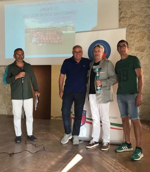 MUSSOMELI –, A conclusione della stagione sportiva 2022/2023, presso la sala conferenze “Michele Abbate” di Caltanissetta, in un clima di festa, la dirigenza dell’Asd “Don Bosco, rappresentata dal Presidente Nino Lanzalaco e dal Mister Giovanni Belfiore, ha ritirato la Coppa attribuita alla squadra “giovanissimi” guidata dai mister Daniele Misuraca e Luigi Alessi, non presenti per impegni lavorativi., Un momento conclusivo per il comitato provinciale di Caltanissetta della Federazione Italiana Gioco Calcio (FIGC) e settore giovanile siciliano che, per la premiazione finale, ha registrato la presenza del presidente provinciale Giorgio Vitale e del Presidente Regionale Sandro Morgana. Erano presenti tutte le associazioni Calcistiche della provincia accolte calorosamente dai dirigenti provinciali e regionali. Sono state premiate le società che durante la stagione hanno raggiunto importanti traguardi nei campionali-L.N.D. – e – S.G.S. Come già detto, anche la Don Bosco ha avuto il suo riconoscimento, e nell’occasione ha promosso il proprio patrimonio cittadiino, donando al presidente regionale Sandro Morgana, un esemplare di castello in miniatura da poter mettere nel suo ufficio di Lega: un gesto gradito ed apprezzato.