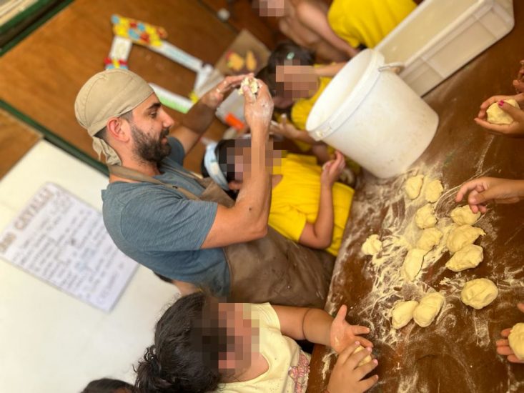 I bambini si sono divertiti tantissimo a manipolare la pasta da pane, dando forma ai classici formati di pane e inventando nuovi formati creativi. Le loro idee sono state sorprendenti e il loro entusiasmo contagioso. È stato meraviglioso vedere come la cucina possa essere un’occasione per esprimere la creatività e la gioia”.