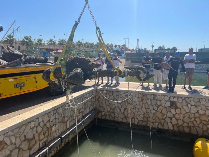 Recuperati ad Agrigento, dai fondali in località San Leone, i primi cannoni e un’ancora in ferro del relitto di Scoglio Bottazza. Si tratta dei resti di una nave commerciale armata, presumibilmente di epoca tardo rinascimentale, giacente a circa 15 metri a ridosso della secca omonima presso la foce del fiume Naro. Il recupero è stata realizzato in maniera congiunta dalla Soprintendenza del mare della Regione Siciliana, attraverso il consorzio Ganosis di San Leucio del Sannio (Bn) che si è aggiudicato l’appalto per i lavori, insieme a Capitaneria di porto, Guardia costiera e Nucleo tutela patrimonio culturale dei carabinieri di Porto Empedocle.