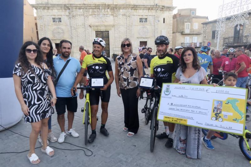 VILLALBA – La pedalata lunga 1700 Km, con partenza del 10 agosto dalla città delle Torri e della fionda Albenga, in provincia di Savona, con destinazione verso il cuore di Sicilia Villalba, in provincia di Caltanissetta, ha avuto termine proprio ieri pomeriggio 16 agosto 2023 intorno alle ore 18 nella piazza principale fra gli applausi dei presenti. Una nobile iniziativa quella messa in campo dall’Associazione “Rievocatori Ingauni” che con i suoi due entusiasti ciclisti, l’ha portato a termine. Infatti, la benefica donazione di mille euro, con bonifico bancario eseguito dall’Amministrazione comunale, diretta da Maria Paola Immordino, è stato consegnato a Giuseppe Di Maria, villalbese ma residente ad Albenga che assieme al ciclista Massimiliano Oliva, lo scorso 10 agosto, alle ore 18 da Piazza Fabrizio De Andrè di Albenga sulla loro bici hanno totalizzato, appunto 1700 km. Va sottolineato che con questa iniziativa i due ciclisti hanno coniugato la passione ciclistica, lo sport, la solidarietà e, soprattutto, l’attenzione per l’Istituto “Giannina Gaslini” Reparto terapia intensiva neonatale a cui va la benefica donazione del Comune di Villalba. Un arrivo gioioso e atteso, dunque, dai concittadini che hanno manifestato il loro plauso ed ammirazione. Presenti il primo cittadino, parenti amici e conoscenti che hanno danno il loro benvenuto con tanti applausi. Un evento questo che, inquadrato nella settimana che precede i festeggiamenti patronali, ha significativamente colorato l’estate villalbese che, assieme ad altri appuntamenti, sta animando questo periodo vacanziero.