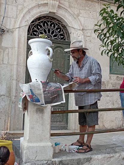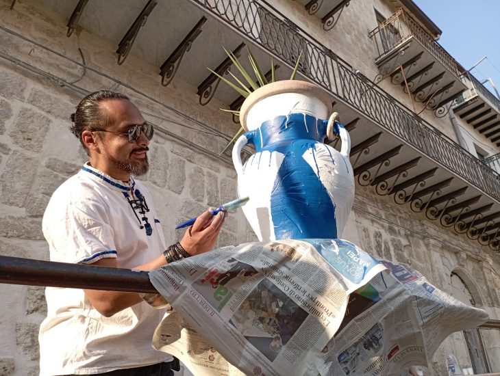 MUSSOMELI – Festeggiamenti di San Calogero a Mussomeli e l’arte, la musica il canto, le tradizioni hanno trovato spazio inel contesto festaiolo che ha visto il quartiere di San Giovanni, Piazza del Popolo e chiesa di San Giovanni, un lembo di terra, nella parte bassa del paese, ri-animato con attività, coreografie, suoni e danze, grazie ai promotori che hanno inteso valorizzare così il territorio. Infatti, una quindicina di artisti locali e non, aderendo all’invito dei promotori, (più specificatamente la confraternita del Sacramento di San Giovanni), hanno dipinto le giare, collocate in Piazza del Popolo, che il compianto Elio Di Salvo aveva donato alla comunità abbellendo, appunto, la piazza. Un lavoro fatto, dunque, nella giornata di sabato, vigilia della festa di San Calogero, dove erano i corso i festeggiamenti. Un gesto significativo, quello degli artisti, per ricordare Elio Di Salvo che ha tanto amato Mussomeli. Un segno di riconoscenza del quartiere all’uomo che non c’è più che ha testimoniato la cultura del rispetto dell’ambiente e l’amore per il suo paese. Una iniziativa della confraternita sangiovannese dall’alto valore sociale.