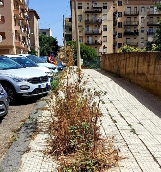 “Un anno fa scrissi la seguente nota. Nella Caltanissetta “verde e stellare” a noi contemporanea, in via Lazio, lungo il marciapiede che costeggia il muro che recinge il piccolo mercato di frutta e verdura della Coldiretti, mi sono imbattuto in un’imprevista e insidiosa espressione vegetale della natura. E qui non si tratta di erbe, di verdure fresche e commestibili, come quelle esposte, e in vendita, a pochi passi di distanza, bensì di cosiddette “erbacce”. Le selvatiche sebbene autoctone piante in questione, approfittando della mancata manutenzione, della sconnessione e della frattura della pavimentazione, qui vegetano floride e incontrollate. E alquanto infide per i passanti. Che altro dire? Al buon cuore dell’Amministrazione Comunale Nissena l’intervento di risanamento pavimentale.