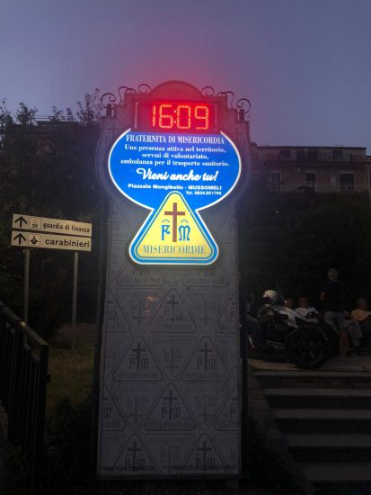 MUSSOMELI – Finalmente l’orologio di villa Falcone Borsellino è nuovamente attivo. La Misericordia riattiva l’orologio del totem della stessa associazione. il Governatore Vittorio Catania tiene a precisare che “Un anno orsono assieme ad un volontario del SCN ci siamo recati presso la Villa Falcone Borsellino a smontare l’orologio che prima segnalava orari sballati e poi si è completamente spento. Dopo aver contattato un tecnico riparatore locale abbiamo smontato l’orologio e consegnato al tecnico; il problema sembrava di facile soluzione come già era successo una volta in passato, ma dopo una verifica mi viene comunicato che il problema non era l’alimentazione ma un integrato non identificabile che non alimentava i led. Mi sono quindi messo alla ricerca di un orologio LED, ma la tecnologia dei led è andata avanti e tutti i distributori contattati non realizzavano più orologi led ma pannelli di dimensioni ben superiori con funzioni avanzate. Non mi arrendo e continuo la ricerca, – continua il governatore Catania – rintraccio la fattura di acquisto e contatto uno dei titolari della Pubblitalia 90, ditta, che oramai ha chiuso. Il sig. Lo Conte, che allora realizzò l’opera, grazie all’impegno di quest’ultimo che a sua volta risalendo alla loro fattura di acquisto, riesce ad indicarmi una ditta, che non riesco a trovare, ma attraverso l’indirizzo della precedente ditta, per una coincidenza di fatti riesco a contattare una ditta a cui invio l’ennesima richiesta: mi risponde, dopo un paio di giorni, il sig. Carlo, titolare della ditta, che mi dice che hanno ancora in produzione questi orologi, ma le misure non corrispondono; uno ha la stessa lunghezza, ma più basso, e un altro, più alto, ma più corto; dopo vari scambi di e-mail ed invio di misure, si decide assieme al Sig. Carlo quello ottimale: parte l’ordine, siamo a fine giugno, mi comunica 30 giorni di tempo per la consegna, che diventano 60 per via del mese Agosto in cui la ditta chiude per ferie. A inizio settembre ricontatto la ditta e mi dicono che l’orologio sta partendo: il 14 arriva il pacco, subito lo sconfeziono e lo provo: è evidente che necessitavano degli adattamenti, contattiamo allora Paolo, un nostro volontario, figlio di uno dei titolari della Europrofile, che si mette a disposizione; ci diamo appuntamento per sabato pomeriggio visto che entrambi abbiamo il pomeriggio libero dal lavoro, iniziamo alle 15:30 assieme al consigliere Pinuccio Favata, alle 19:30 l’opera è completa; ancora qualche piccolo adattamento che faremo Lunedi, ma l’orologio è in funzione. Ringrazio la Ditta Europrofile per averci messo a disposizione oltre al personale anche l’officina e il materiale necessario per gli adattamenti necessari, la ditta Bellanca Calogero di via Caltanissetta per averci fornito gratuitamente alcuni articoli di ferramenta necessari per le modifiche, ma ringrazio tutti coloro che hanno scelto di destinare il 5×1000 alla Misericordia, associazione che a Mussomeli ha ricevuto il maggior numero di consensi. Ed è proprio con una parte di questo 5×1000 che si è provveduto all’acquisto dell’orologio. La Misericordia da oltre 30 anni nel territorio a servizio del territorio, destina al territorio le somme da esso ricevute, assieme ad altri investimenti sempre fatte con queste somme.” Adesso chiedo pubblicamente all’amministrazione comunale di provvedere, se possono, ad alimentare l’orologio 24 ore su 24 e non solo la sera quando si accendono le luci della villa. Ringrazio tutti coloro che hanno collaborato e destinato alla Misericordia il 5×1000, IDDIO VE NE RENDA MERI