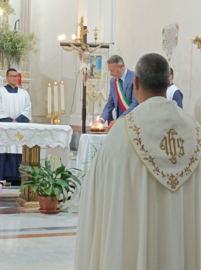 MUSSOMELI – Nella chiesa di San Francesco d’Assisi all’Immacolata, la vigilia della festa, c’erano in tanti alla celebrazione liturgica del Transito di San Francesco. Il rettore Padre Valdecir ha accolto all’ingresso della chiesa le autorità civili e militari nelle persone dell’assessore Seby Lo Conte, in rappresentanza del sindaco, il presidente e vice presidente del consiglio comunale Gianluca Nigrelli e Yosella Schifano, l’assessore Jessica Valenza, Il capitano Giuseppe Tomaselli, il maresciallo Ines Parisi, ed il comandante della Guardia di Finanza Salvo Imbesi. Presenti anche le associazioni “Amici di San Francesco”, i rappresentanti del Cisom, Croce Rossa Italiana, Fratres e Misericordia. Con il corteo introitale fino all’abside, la deposizione della corona di alloro nella parte sottostante al simulacro di San Francesco, da parte dell’assessore Lo Conte, a nome della cittadinanza, e la successiva accensione della lampada votiva, il celebrante Padre Valdecir ha dato il via alla funzione religiosa con il Transito di San Francesco, animato dal coro della comunità francescana. Ben visibili i labari della Milizia dell’Immacolata e del Terz’Ordine Francescano. E’ seguita, poi, l’omelia, la preghiera a S. Francesco dell’assessore Lo Conte, a nome della cittadinanza, la benedizione e distribuzione dei ramoscelli d’ulivo ai presenti nel segno della pace. Presenti i fraticelli della Copiosa Redenzione.