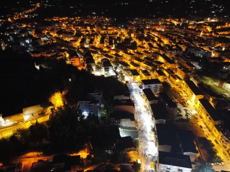 Le foto riprese dall’alto hanno mostrato un autentico spettacolo di luci e colori che ha caratterizzato una “Fera” che quest’anno ha fatto registrare una partecipazione ed una condivisione davvero notevoli.