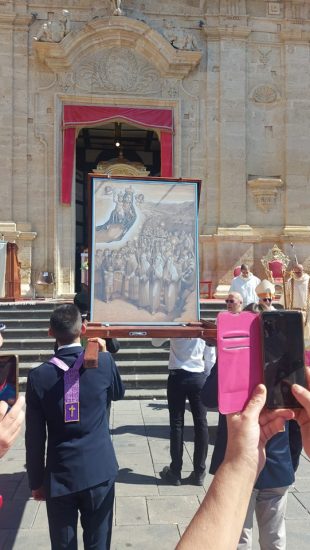 SOMMATINO – La Confraternita del Santissimo Sacramento di Sommatino è stata presente nella giornata dell’8 ottobre 2023, insieme a tanti confrati e consorelle delle varie Diocesi della Sicilia al terzo incontro regionale delle Confraternite a Grammichele in provincia di Catania. Ha presieduto la liturgia eucaristica mons. Calogero Peri e mons. Pennisi assistente nazionale della Confederazione delle Confraternite d’Italia. Era visibile l’immagine della Madonna Madre della Speranza e Madre delle Confraternite per la venerazione e preghiera. C’è stato il corteo processionale a cui hanno partecipato i confrati e le consorelle di Sommatino.