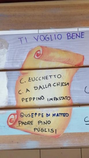 SUTERA. Il Sindaco della Città di Prato, Dott. Matteo Biffoni, in collaborazione con il Dirigente Scolastico dell’istituto comprensivo Pacetti di Prato, Prof. Quercioli Giovanni, hanno inaugurato la panchina della legalità e della gentilezza (Realizzata da Tiziana Maniscalco).
