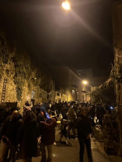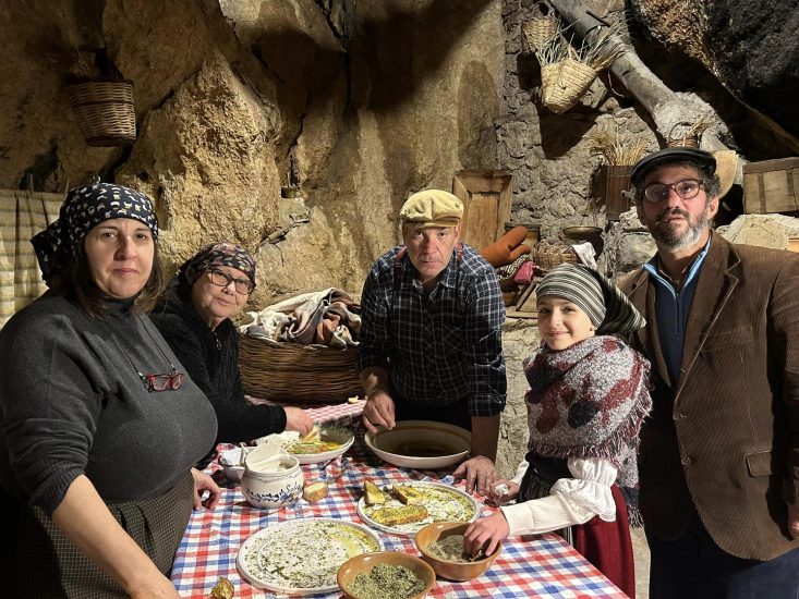 Le numerose comparse in abiti d’epoca hanno interagito con gentilezza e umiltà con i visitatori per riportarli indietro nel tempo facendoli sentire a casa loro. Il tutto attraverso un percorso emotivo e sensoriale, in un’atmosfera quasi surreale che ha permesso di riscoprire così un mondo ancora genuino e semplice, che non c’è più. Per i visitatori, tantissimi provenienti da ogni parte della Sicilia, è stata un’esperienza decisamente irripetibile nel corso della quale hanno avuto modo di degustare le semplici pietanze della tradizione contadina e pastorale, gli odori inconfondibili, la particolare gustosità e la genuinità degli alimenti. Non è mancata, come da tradizione, il suono delle cornamuse e le nenie in dialetto in onore di Gesù Bambino.