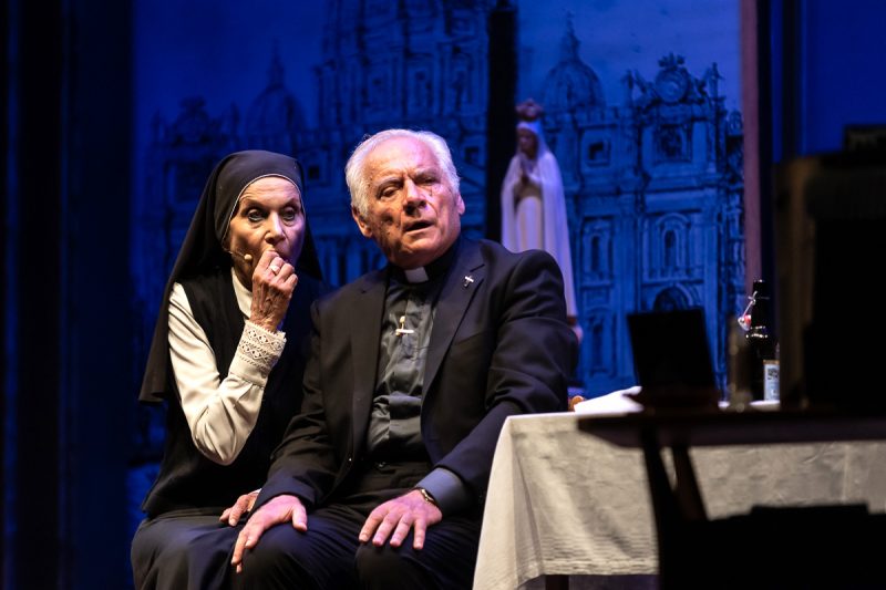 “I due Papi”, diretto da Giancarlo Nicoletti, vede in scena Giorgio Colangeli e Mariano Rigillo, tra i migliori attori del panorama teatrale italiano, nei ruoli di Papa Ratzinger e Papa Bergoglio. Fra documento storico, humour e dramma, lo spettacolo ripercorre non solo i giorni frenetici che portarono dalla rinuncia di Benedetto all’elezione di Francesco, ma anche le “vite parallele” di due uomini molto diversi, accomunati dallo stesso destino. E, soprattutto, racconta la nascita di un’amicizia – speciale e inaspettata – fra due personalità fuori dall’ordinario. Al centro di tutto, una domanda senza tempo: quando si è in crisi, bisogna seguire le regole o la propria coscienza?