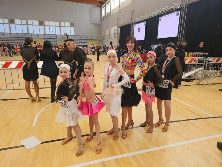 A rappresentare la categoria solo latin sono stati gli atleti Stefania Stroe appartenente alla 8/9 anni, portando a casa 2 medaglie d’oro nelle specialità Samba e Cha cha cha; seconda e terza posizione nella stessa categoria e specialità per l’atleta Russo Chantal; nella 10/11 anni (categoria più numerosa) l’atleta Russo Nicole entra in finale portando a casa due quarte posizioni in entrambe le specialità; a rappresentare la categoria 12/13 le atlete Corbo Marta e Zola Chiara posizionandosi in quarta e quinta posizione; 3 ori per Stefania Palmeri, insegnante della sede di San Cataldo, che si é voluta rimettere in gioco dopo aver partorito uno splendido bambino, e nonostante il poco allenamento é riuscita a conquistare il gradino più alto del podio nelle specialità Samba, Cha cha cha e Rumba nella categoria over17.