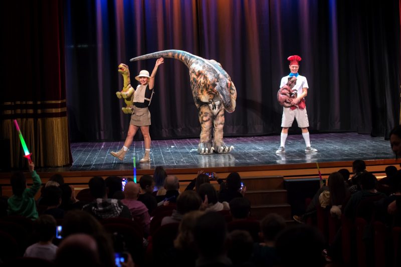 Lo spettacolo, come hanno spiegato gli organizzatori, sarà ambientato indietro nel tempo con la presenza di 7 esemplari di dinosauri animatronici a grandezza naturale che interagiranno mossi da operatori specializzati attraverso telecamere interne agli stessi.