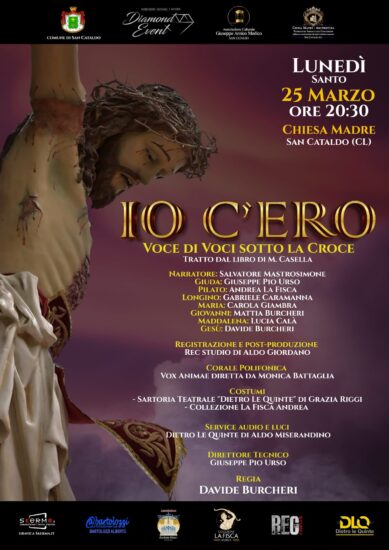 Partendo dal Lunedì Santo 25 marzo presso la Chiesa Madre di San Cataldo, viene messo in scena un nuovissimo testo per i Sancataldesi , 《IO C’ERO- Voce di voci sotto la croce》, il testo dello scrittore Michele Casella, Lunedì sera ascolteremo i vari racconti della morte di Cristo ,raccontati dai vari personaggi che hanno preso parte a quei momenti.