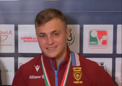 Sono tre gli atleti dietro di lui a contendersi le altre medaglie: la spuntano Elia Marzano, argento con 256 (111+145) e Angelo Cignola, bronzo con 255 (115 +140) Le gare verranno trasmesse in diretta sul canale YouTube FIPE TV con costanti aggiornamenti sui social federali (fipe.federpesistica). Orari: Sabato 8.00 – 20.00 (categorie 45/49 kg F – 55/61 kg M – 55/59 kg F – 67/73 kg M – 64/71 kg F – 81/89 kg M) Domenica 8.30 – 17.00 (categoria 76/81 kg F – 96/102 kg M – 87/87+ kg F – 109/109+ kg M)