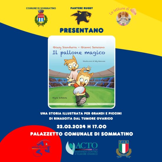 Venerdì 22 marzo, alle ore 17, nel palazzetto dello sport di Sommatino sarà presentato il libro “il Pallone magico” scritto da Gianni Saraceno, Presidente FIR Sicilia, e da Giusy Scandurra, direttore UOC oncologia medica ospedale Cannizzaro.